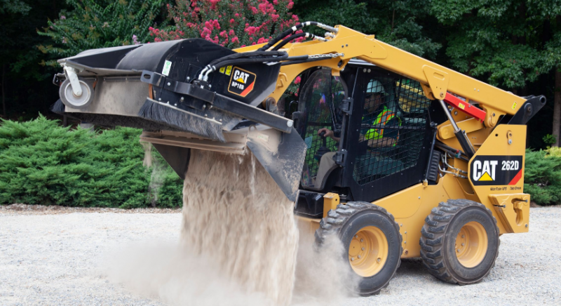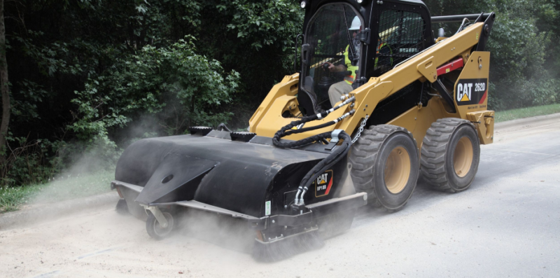 La location du Brassenx vous propose ce chargeur compact équipé d'une balayeuse de chantier en frontal.