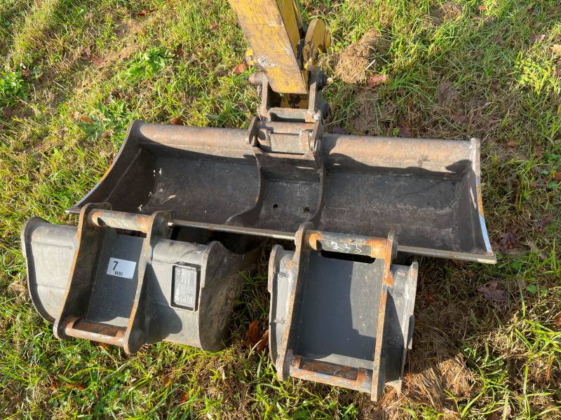 La pelle 2t mesure 1.10m en largeur et est équipée de 3 godets de 25cm, 50cm et 100 cm