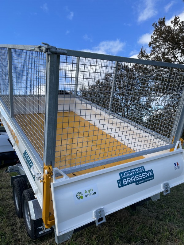 Si vous cherchez une remorque multi usage avec une benne basculante et des ridelles réhaussées grillagées, venez à la Location du Brassenx !