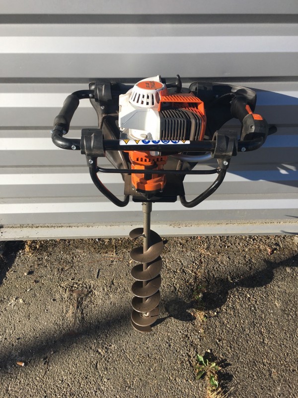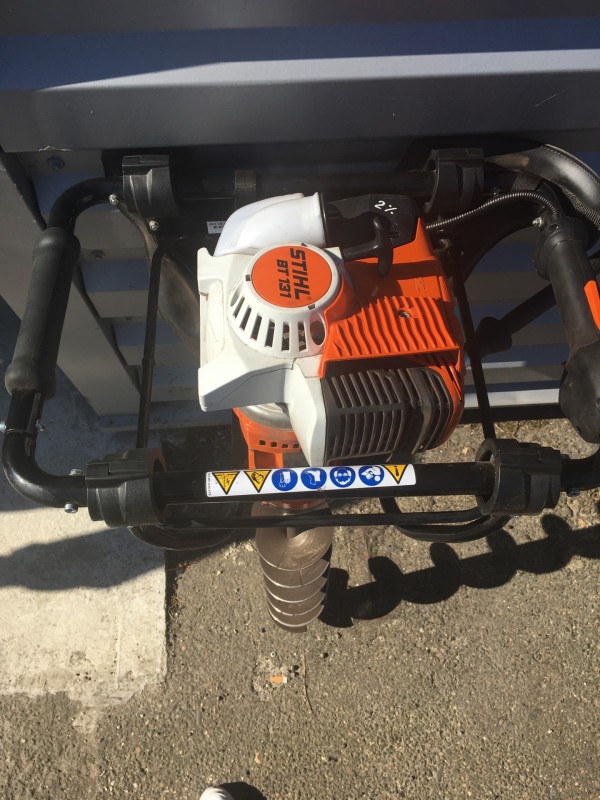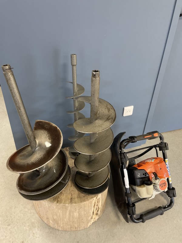 La Location du Brassenx vous propose cette tarière thermique et ses 3 mèches de différents diamètres.