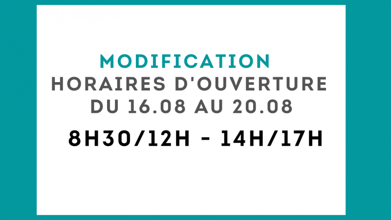 Modification des horaires d'ouverture du service de location du 16.08 au 20.08.